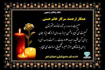 تسلیـت بـه همکـار ارجمنــد سرکار خانم حسنی 1404/05/14 - 11:04 - تعداد بازدید: 21 - کد خبر : 343523 - گروه خبری : اخبار اسلایدر,عکس - تعداد نظرات : 0