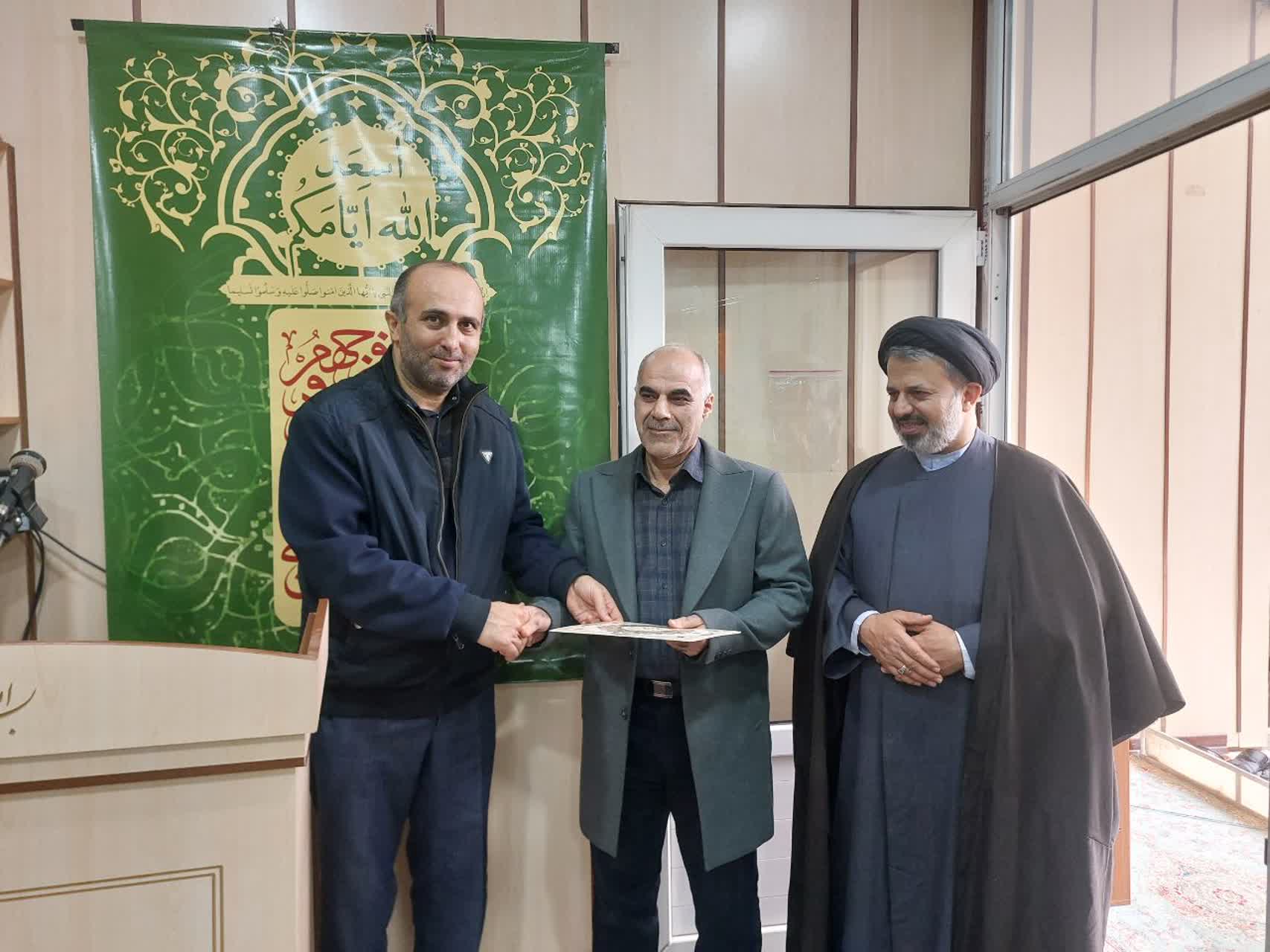 همچنین از آقای عابدی که حائز رتبه برتر قرآنی بود تجلیل بعمل آمده و از سرکار خانم سجادی از فرزندان همکاران ، که در رشته حفظ 5 جزء قرآن کریم حائز رتبه گردیده بود تقدیر به عمل آمد.